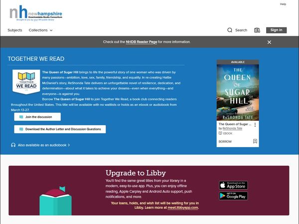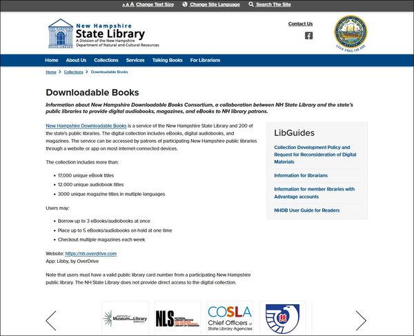 The NH Downloadable Consortium is a collaboration between NH State Library and the state’s public libraries to provide digital audiobooks, magazines, and eBooks to NH library patrons.